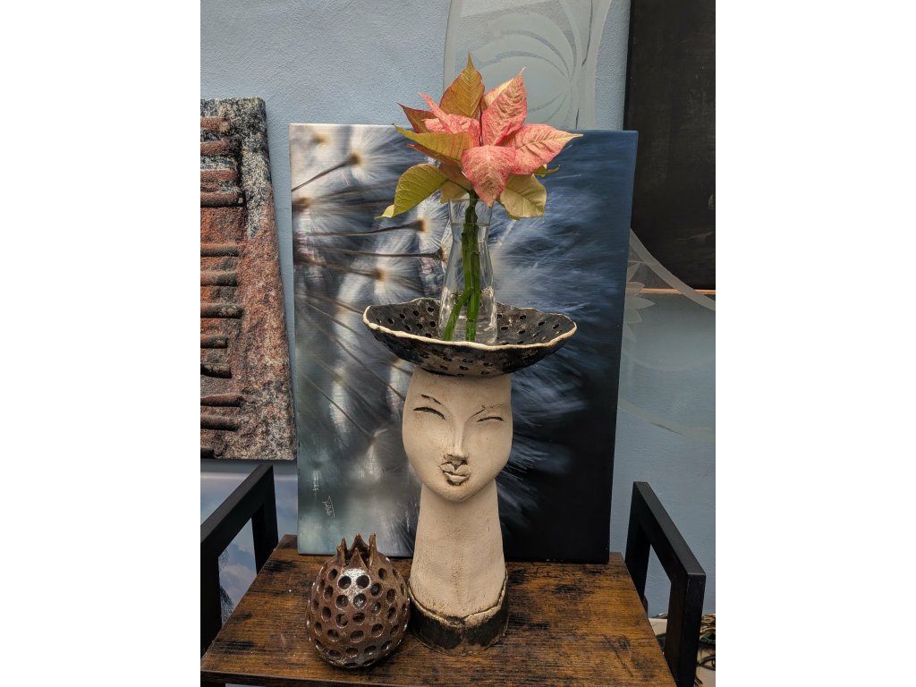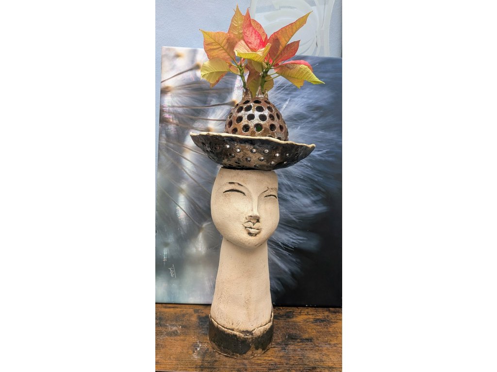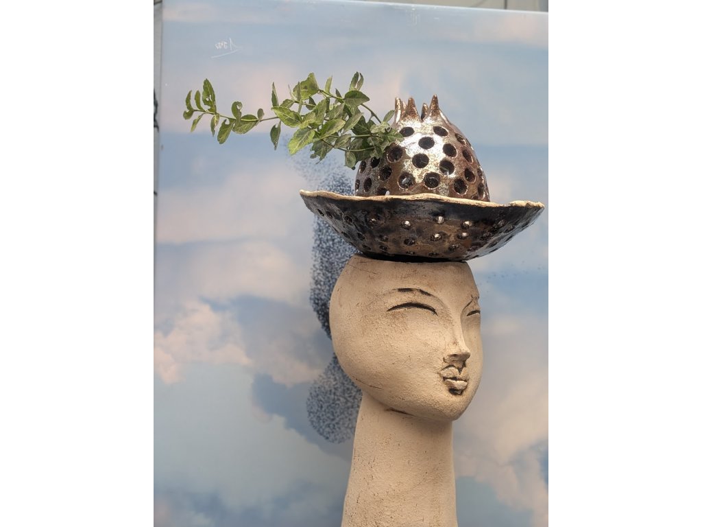 Keramická plastika Hlava Keramická hlava/ Květník