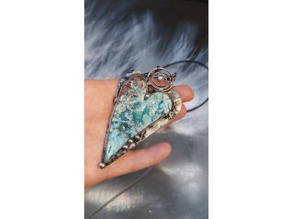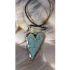 Keramický tyrkysový náhrdelník s motivem chrta. Dotvořen jemným zeleným minerálem. Neopakovatelný do vašeho dekoltu! Na kožené kulaté kůži cca 50cm. Zavěšeno na...