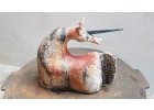 Keramické sochy stavím, ručně modeluji. Dotvářím je jedinečnými kovanými prvky.